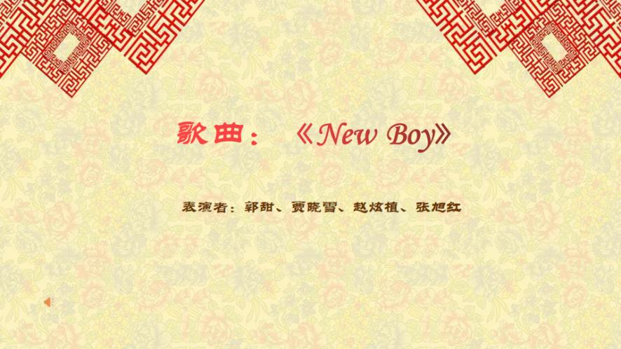 新年新气象,新的一年在向我们招手。由郭甜、贾晓雪、赵炫植、张旭红同学带来的歌曲《New Boy》,为我们唱出了新年的祝愿与希冀,带领着所有人在寒冬时节同过去告别,在春来之际同未来sayhi。