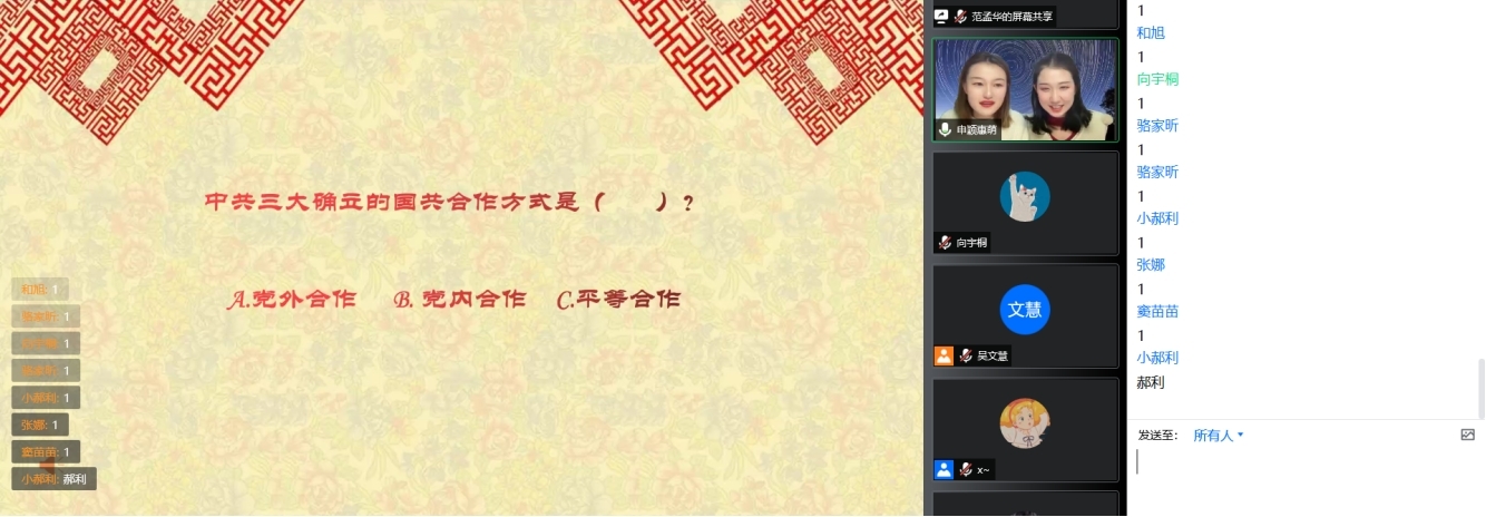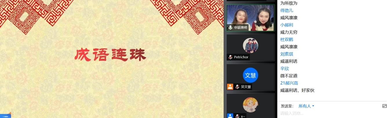 随后,我们迎来了本次晚会的游戏竞技环节——成语连珠。全体师生积极参与、竞相抢答,将晚会的气氛推向了高潮。