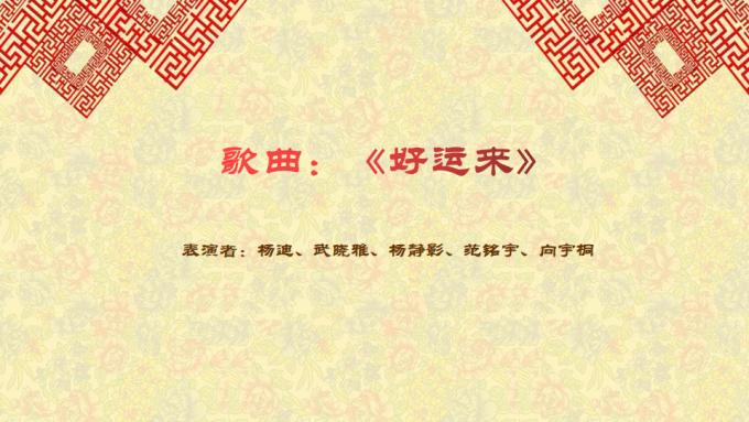 过去的这一年,你我都是风雪夜归人,追梦路上勇敢而赤诚。杨迪、武晓雅、杨静影、范铭宇、向宇桐同学以一曲《好运来》为我们献上新年祝福,祝愿大家在新的一年幸福满满,好运连连!