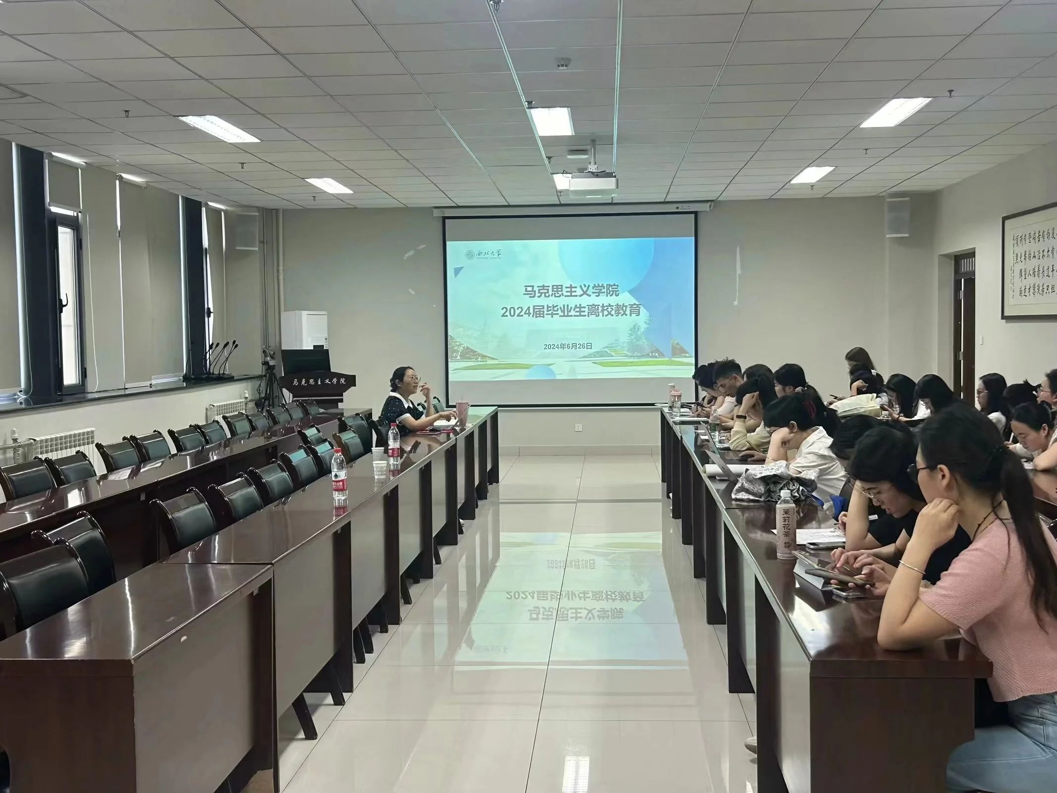 邵平对永利官网2024届毕业生进行了离校教育。她希望大家始终怀揣梦想、脚踏实地,时刻保持谦虚谨慎的态度,不断学习,提升自己,在面对工作、家庭、生活时充满耐心和信心,牢记西大马院人的身份,积极进取,为实现自己的人生目标而努力拼搏,做一名优秀的西大校友。同时,她谈到,在今后工作、生活中遇到困难时,希望大家能够保持乐观阳光的心态,也可以随时向导师、同门、舍友和同学们寻求帮助,西大马院永远是大家坚实的后盾。