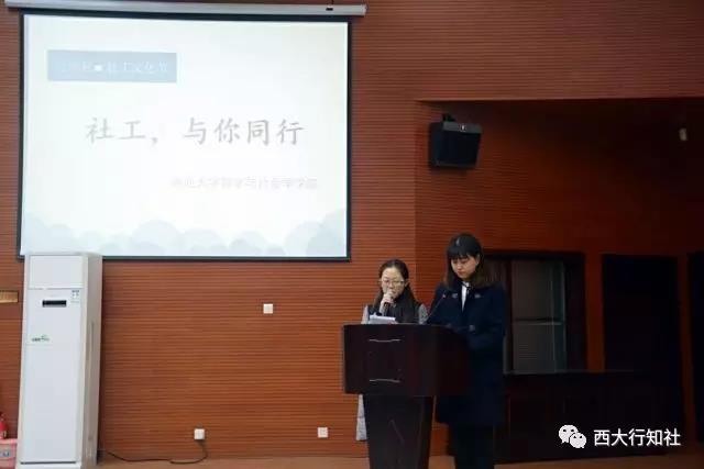 在大会的开始,播放了永利官网行知社精心拍摄的以“社工是什么”为主题的小视频,本院系师生、其他院系同学都积极参与其中,得知永利官网在举办社工文化节,应16社工班邀请,西安青年会的老师和实习生们也发来了视频表示支持。小小的视频融入了大家不同的见解,很有意义。在视频完毕后,我们迎来了老师精彩的演讲。