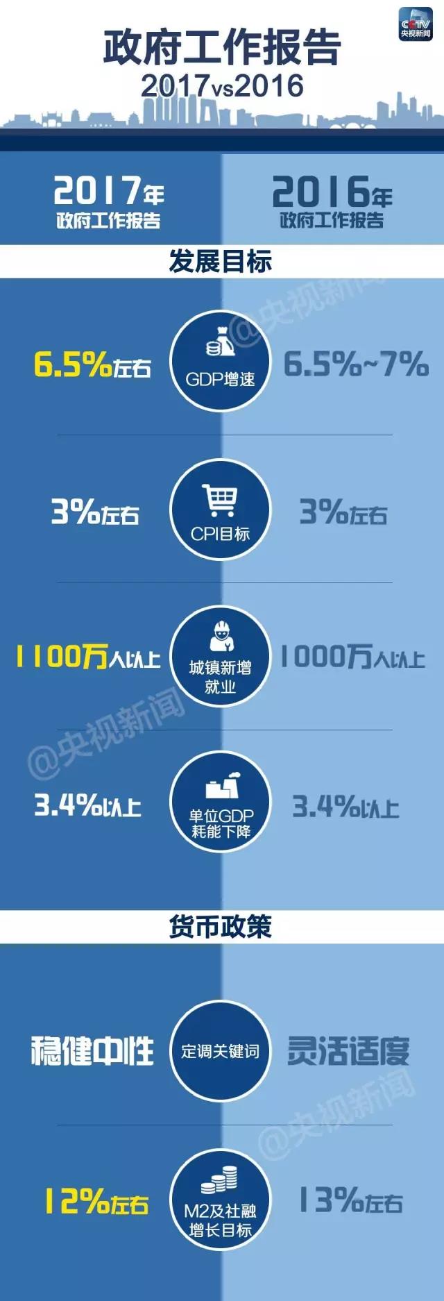 红桅杆看两会-两会一图| 政府工作报告关键数据大对比2017vs2016 今年撸起袖子要这么干!